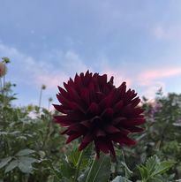 'Hollyhill Black Beauty' is a striking variety known for its dramatic and elegant blooms. The flowers are a deep, rich burgundy, almost black, creating a stunning contrast against the dark green foliage. With their fully double, rounded shape and pointed petals, these dahlias exude sophistication, making them a captivating focal point in any garden.